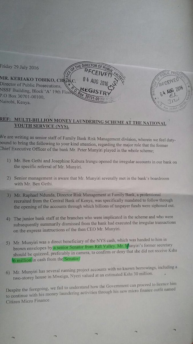 and that is my conspiracy theory. That would make for a very poor conspiracy theory. Why would she then be in possession of documents implicating her bosses? Why would they let her have it? This thing is very simple. Theft, not even corruption. We are trying to link a political game because some old man shouted from the rooftop and forgetting to look at the bare facts. A couple of guys sat down and planned a grand heist to milk their employer. They knew that NYS was a good cash cow. They didnt even expect to be discovered since they must have tried and tested the waters (600M heist). Think of it from a company perspective, lots of cash is stolen in companies such banks, telcos etc. My conspiracy goggles tell me that they underestimated her, that happens especially when you work with someone for a long time, you might think huyu ni mjinga hata hawezi pata kazi ingine, ataniogopa.