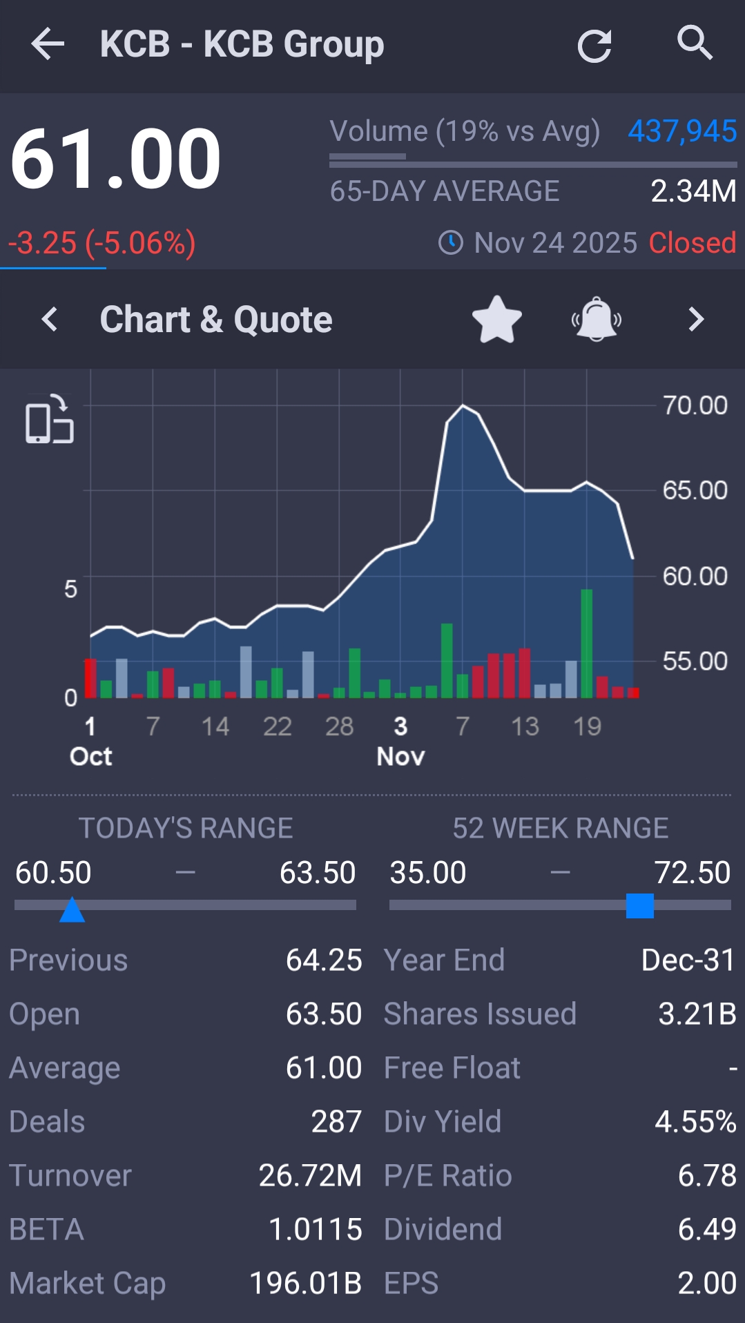 ). I sat it out. Now my finger is on the trigger. I am happy buying at 50s for my next batch even though 60s is still a bargain for a share whose eps for fy 2025 will be around Kshs. 25/=!!!