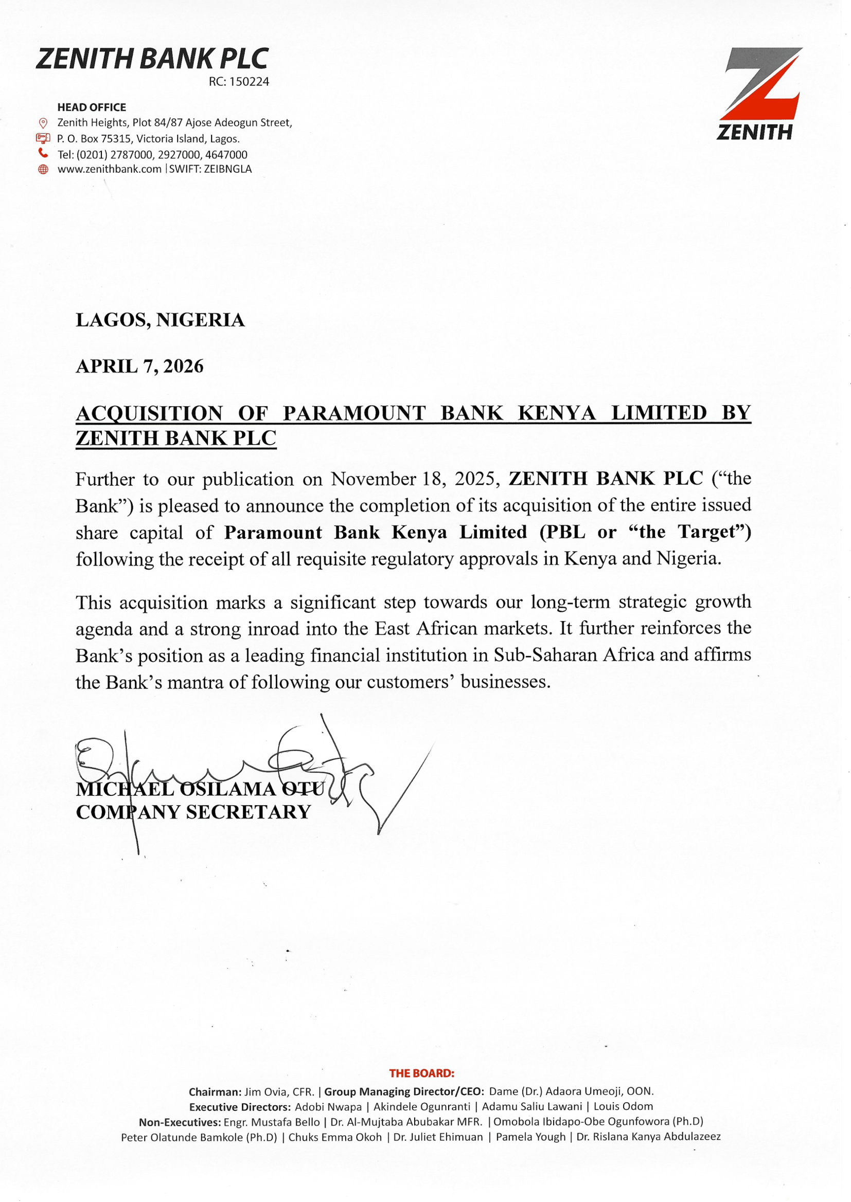 Paramount Bank Kenya bought out by ZENITH.NG https://www.businessdail...s-paramount-bank-5335032 COOP, IMH, KQ, MTNU