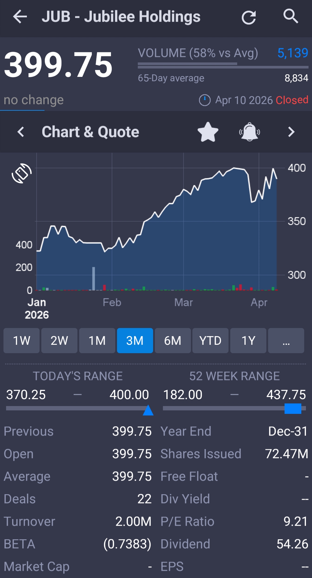 2. JUB. NBV KES 783 (Start Price: Ksh 345; Current Price KES 398. Target/ONO Exit Price range Ksh 420 by Dec 31st 2026); About 21% Upside