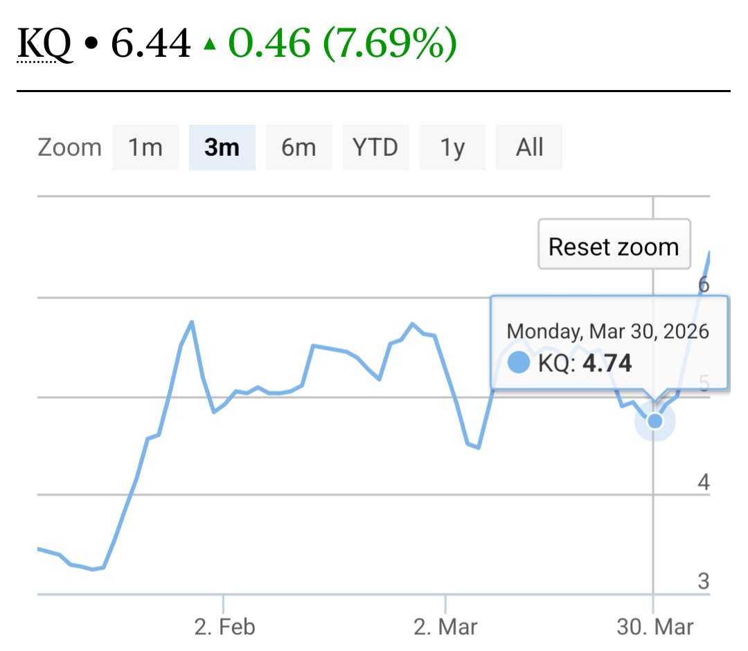 obiero wrote:obiero wrote:obiero wrote:Blukes wrote:obiero wrote:Blukes wrote:Ride or die. Kes.10.00+,, staying focused is the rule of the game. Senior elder Obiero am 100% on your lane on this Ride .🤝 @Blukes. Monday 26 Jan 2026; KES 5.24 which represents a significant support level, will be the defining mark. If broken clean upwards, then KES 7 should be the next stop. If not broken, with volume, then it should trend sideways for a while, in the KES 4.5 - KES 5.5 band. KES 10 is rather ambitious, but not impossible!  sure your projection is already in progress at the market. We still hold steady. all the best wishes in your trading journey KES 4.5 - 5.5 band KES 10 is far fetched but not impossible A fact, the KQ share is currently trading on opium level optimism, not fundamentals of any kind. We all know, a stock with NIL dividend for 11 years, negative equity of 177B and loss before tax of KES 17.2B. For the trader, if you can lighten your KQ holding at KES 7.00 do not hesitate. Remains (sic) can be offloaded at KES 8.68. Thank me later  COOP, IMH, KEGN, KQ, MTNU