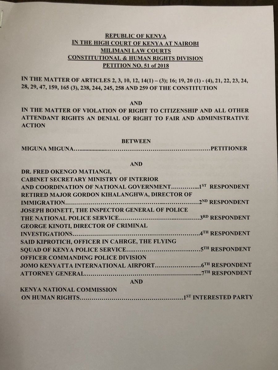 alma1 wrote:hardwood wrote:alma1 wrote:Ngalaka wrote:In light of the new Court orders of today (NB I say this based on what has been posted here, trusting it to be legitimate), the autorities - Police and immigration official MUST comply and present Miguna in Court tomorrow but under guard.