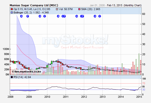 @mucene - If the NAV was 7/- [30 June 2014] then it has been eroded rapidly since. I doubt the 1H 2014-15 results will show a profit. KPLC is demanding a huge payment [Capacity Charge] from Mumias. If KPLC took Mumias to court then that would be another black mark. Add the accumulated interest from the lenders since June 2014 as well. Greedy when others are fearful. Very fearful when others are greedy - to paraphrase Warren Buffett